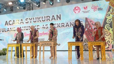 NEWSNUSANTARA.COM,BALIKPAPAN – Kota Balikpapan dipercaya menjadi tuan rumah perayaan puncak Hari Ulang Tahun (HUT) ke-45 Dewan Kerajinan Nasional (Dekranas) tahun 2025. Acara tersebut dipusatkan di Balikpapan Sport and Convention Center (BSCC) Dome dan secara resmi dibuka oleh Ketua Umum Dekranas yang juga Istri Wakil Presiden RI, Selvi Gibran Rakabuming, melalui pemukulan alat musik tradisional Kalimantan Timur, Jatung Utang.