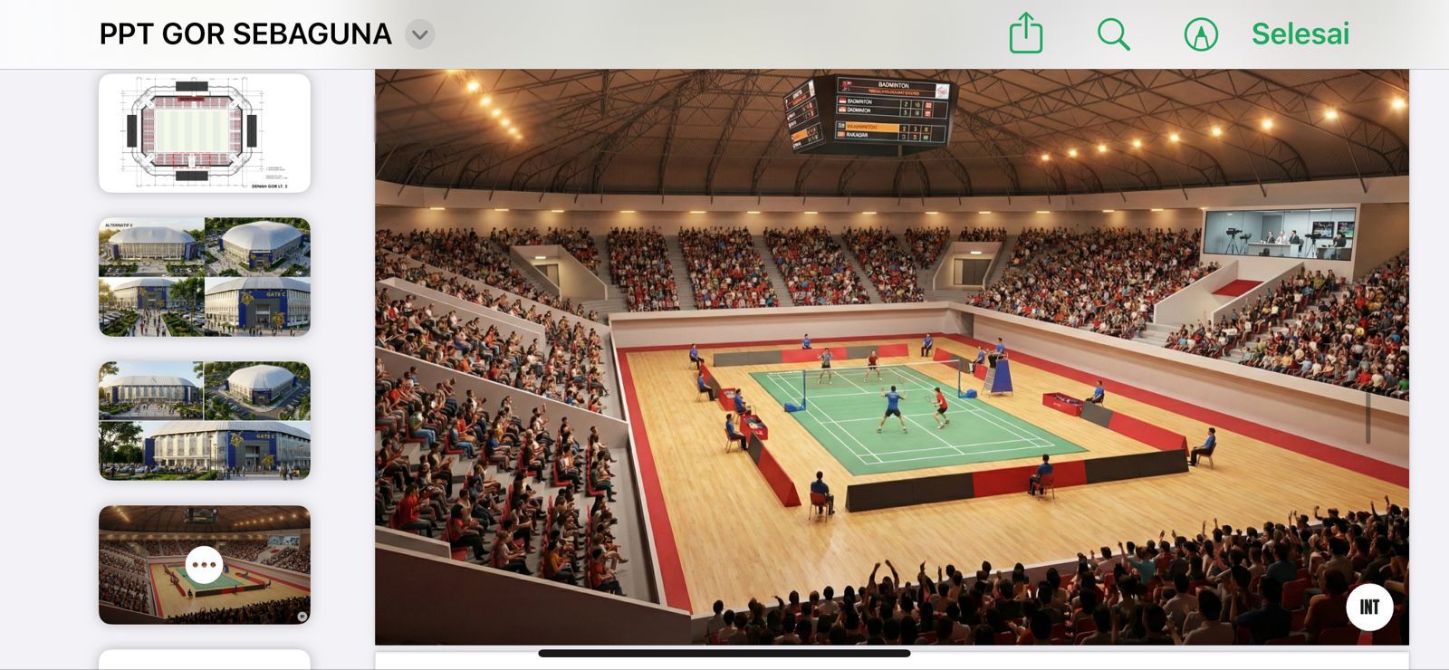 “Konsepnya multievent. Jadi satu gedung bisa menyesuaikan kebutuhan berbagai cabor, baik untuk latihan maupun pertandingan,” katanya.