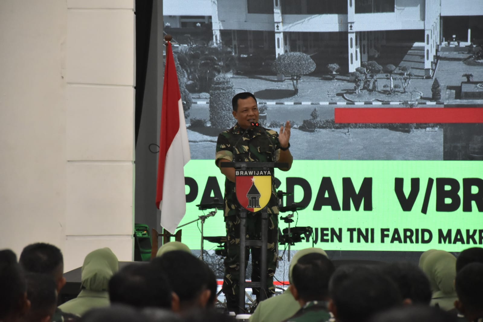 NEWSNUSANTARA.COM SURABAYA– Pangdam V/Brawijaya, Mayjen TNI Farid Makruf menggelar kunjungan kerjanya ke Makorem 084/Bhaskara Jaya. Selasa (07/03/2023). Di hadapan Prajurit, PNS dan Anggota Persit, Pangdam menyampaikam beberapa hal, terutama menyangkut soal kekompakan antar prajurit.“Tolong pertahankan situasi dan kondisi satuan yang bagus ini. Moril prajurit tinggi, semuanya kompak. Kegiatan ekstra yang harus dilakukan sudah berjalan dengan baik,” ujar Pangdam.Tak hanya itu saja, Pangdam juga menegaskan jika aparat Babinsa juga memiliki peranan yang tak kalah pentingnya dalam upaya mewujudkan Kemanunggalan TNI dan rakyat, hingga kondusifitas wilayah. Babinsa, menurut Pangdam, merupakan ujung tombak Satuan TNI-AD yang memiliki tugas strategis.