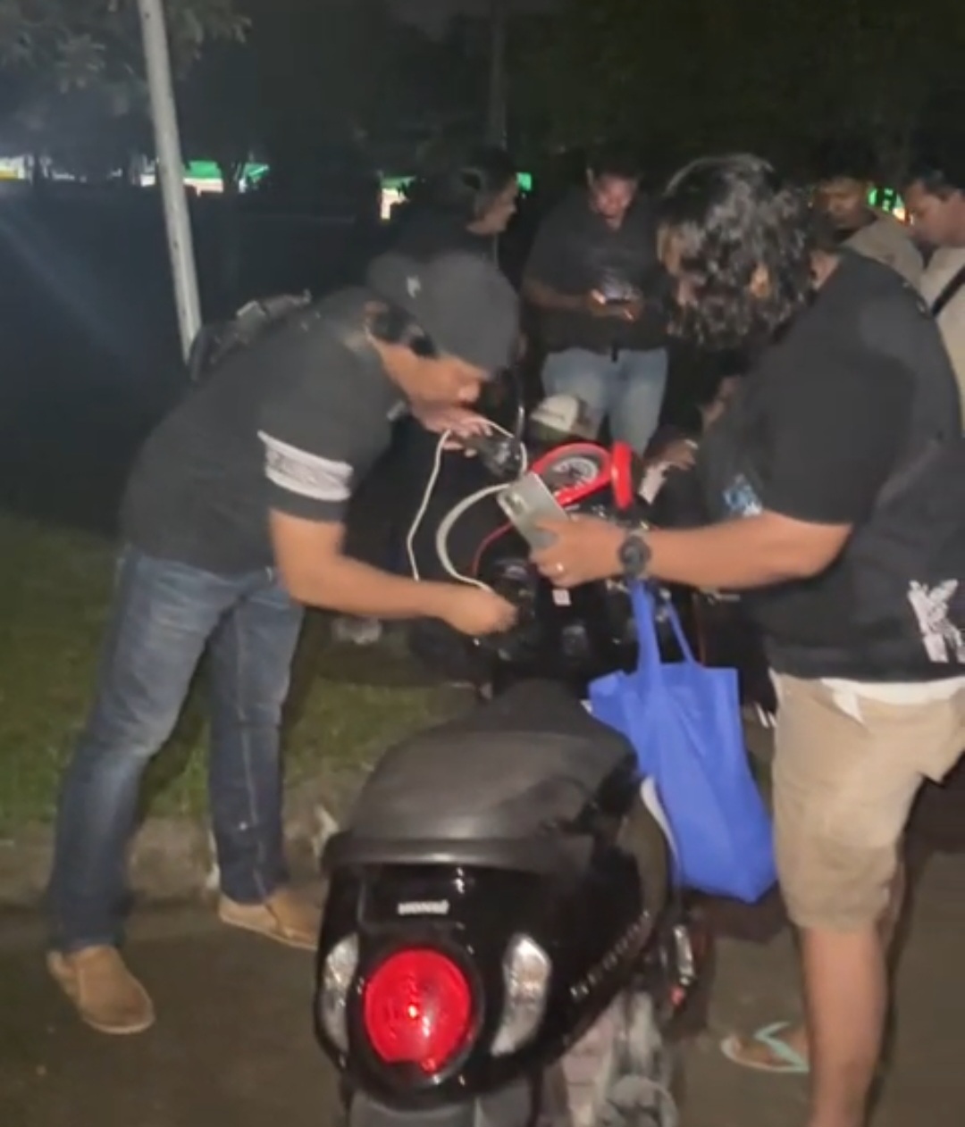 Motor korban awalnya hanya didorong ke tempat yang dianggap aman untuk dipreteli. Yakni tersangka melepas kabel kontak dari motor tersebut dan kemudian menyambungnya dengan timah rokok.