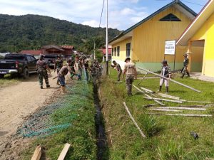 NEWSNUSANTARA,NUNUKAN-Dalam rangka menyambut HUT TNI Ke-77 Satgas Pamtas Yonarmed 5/105 Tarik/PG Pos Gabma Long Midang bersama personel Tentara Diraja Malaysia (TDM) Yon 7 RS (Regimen Sempadan), personel Koramil 0911-06/Krayan dan masyarakat Long Midang melaksanakan kegiatan Karya Bakti di lokasi Long Midang Kecamatan Krayan Kabupaten Nunukan Kalimantan Utara.