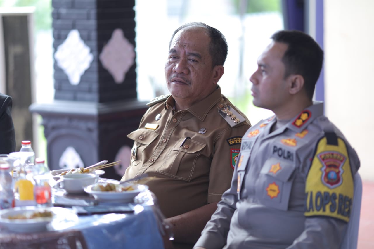 NEWSNUSANTARA.COM, ASAHAN – Bupati Asahan Taufik Zainal Abidin Siregar, S.Sos., M.Si dan Wakil Bupati Asahan Rianto, S.H, M.A.P beserta OPD se Kabupaten Asahan menghadiri undangan Open House dalam rangka Halal Bihalal Hari Raya Idul Fitri 1446 H yang dilaksanakan oleh Kapolres Asahan, pada kegiatan tersebut Bupati Asahan berharap agar momen Idul Fitri ini bisa menguatkan rasa kekeluargaan dan kekompakan Forkopimda Kabupaten Asahan. Kebersamaan Forkopimda yang terus terjalin ini akan menjadikan Kabupaten Asahan tetap dalam keadaan aman dan kondusif, serta dapat dengan mudah menyelesaikan setiap persoalan dan masalah yang ada di Kabupaten Asahan. Hal ini diungkapkan Bupati Asahan usai menghadiri open house di Rumah Dinas Kapolres Asahan bersama dengan Ketua PN Kisaran, Dandim 0208/Asahan, Wakil Bupati Asahan, Sekretaris Daerah Kabupaten Asahan dan para OPD Pemkab Asahan, Selasa (08/0/2025).
