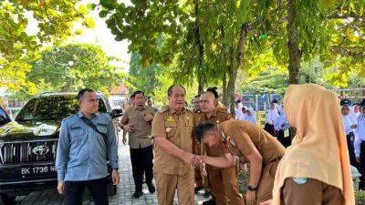 NEWSNUSANTARA.COM, ASAHAN – Camat Kota Kisaran Timur A. Syaiful P. Pasaribu, S.AP.,M.M didampingi Lurah Selawan Ade Rizki Dermansyah, S.IP menghadiri kegiatan Masa Pengenalan Lingkungan Sekolah (MPLS) di UPTD SMP Negeri 1 Kisaran yang dihadiri oleh Bupati Asahan Bapak Taufik Zainal Abidin, S.Sos.,M.Si, OPD, Kepala dan Guru pada UPTD SMP Negeri 1 Kisaran serta peserta didik baru Tahun ajaran 2025 pada UPTD SMPN 1 Kisaran. Kegiatan MPLS ini melakukan Apel bersama peserta didik baru yang dipimpin langsung oleh Bapak Bupati Asahan selaku pembina apel. Senin (14/07/2025)