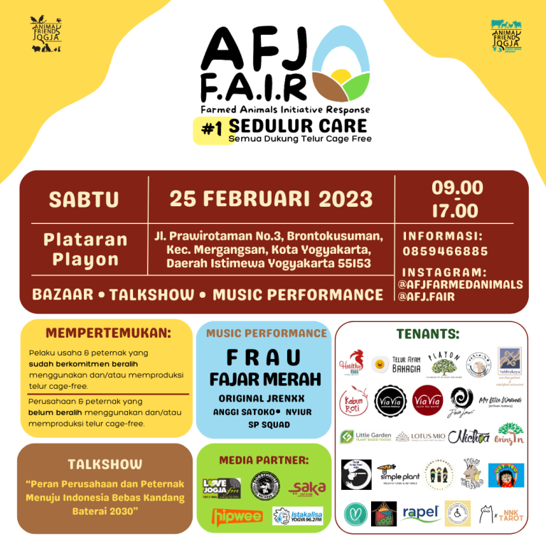 NEWSNUSANTARA.COM,Yogyakarta, 14 Februari 2023—Animal Friends Jogja akan menghelat sebuah acara bertajuk AFJ