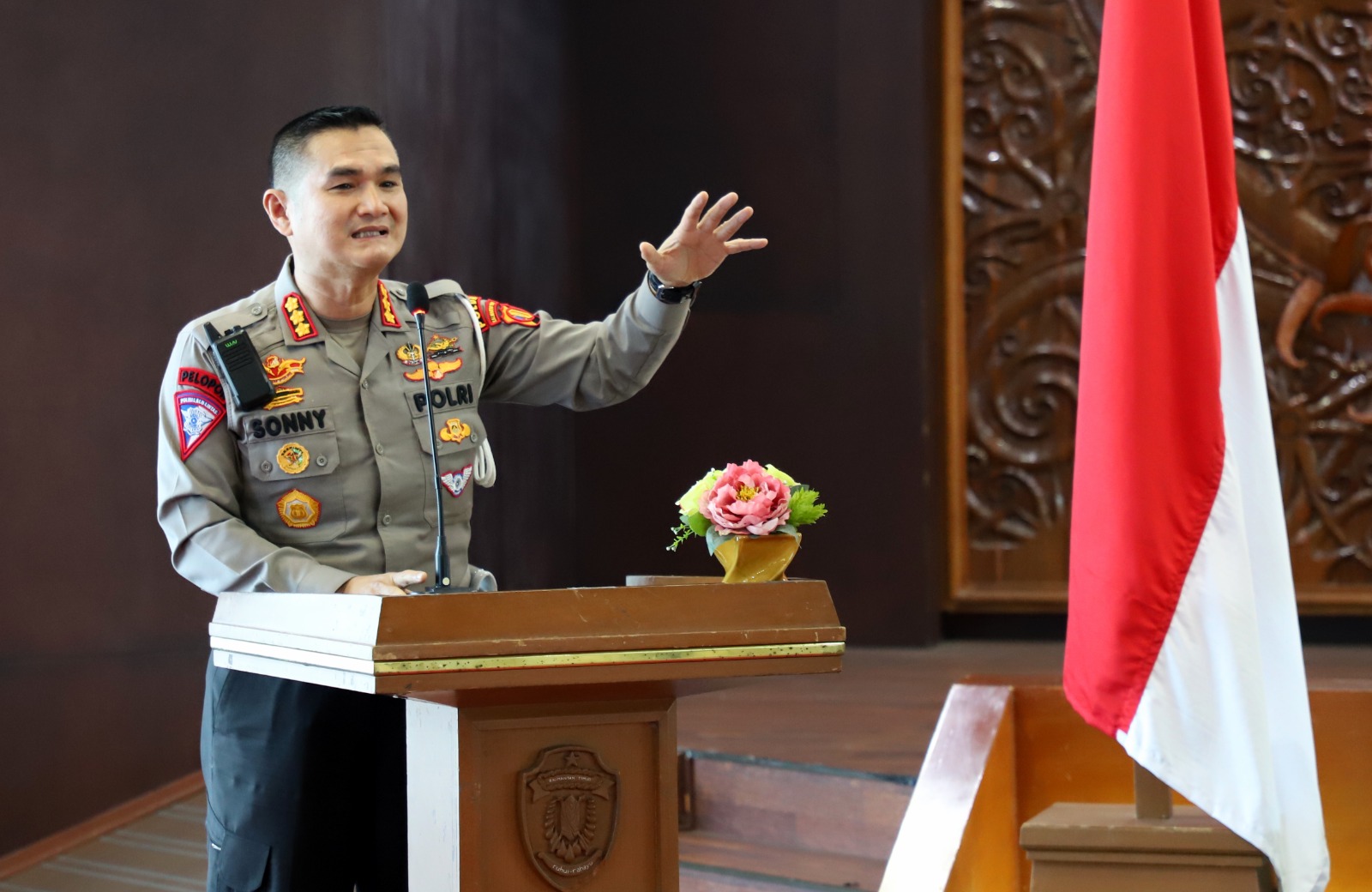 NEWSNUSANTARA.COM SAMARINDA- Mewakili Kapolda Kaltim, Direktur Lalu Lintas (Dirlantas) Polda Kaltim Kombes Pol Sonny Irawan SIK MH mengikuti rapat koordinasi Persiapan Angkutan Lebaran Tahun 2023 Provinsi Kaltim bertempat di Ruang Ruhui Rahayu Lt.1 Gedung Gubernur Kaltim, Kota Samarinda, Selasa (11/04/2023).