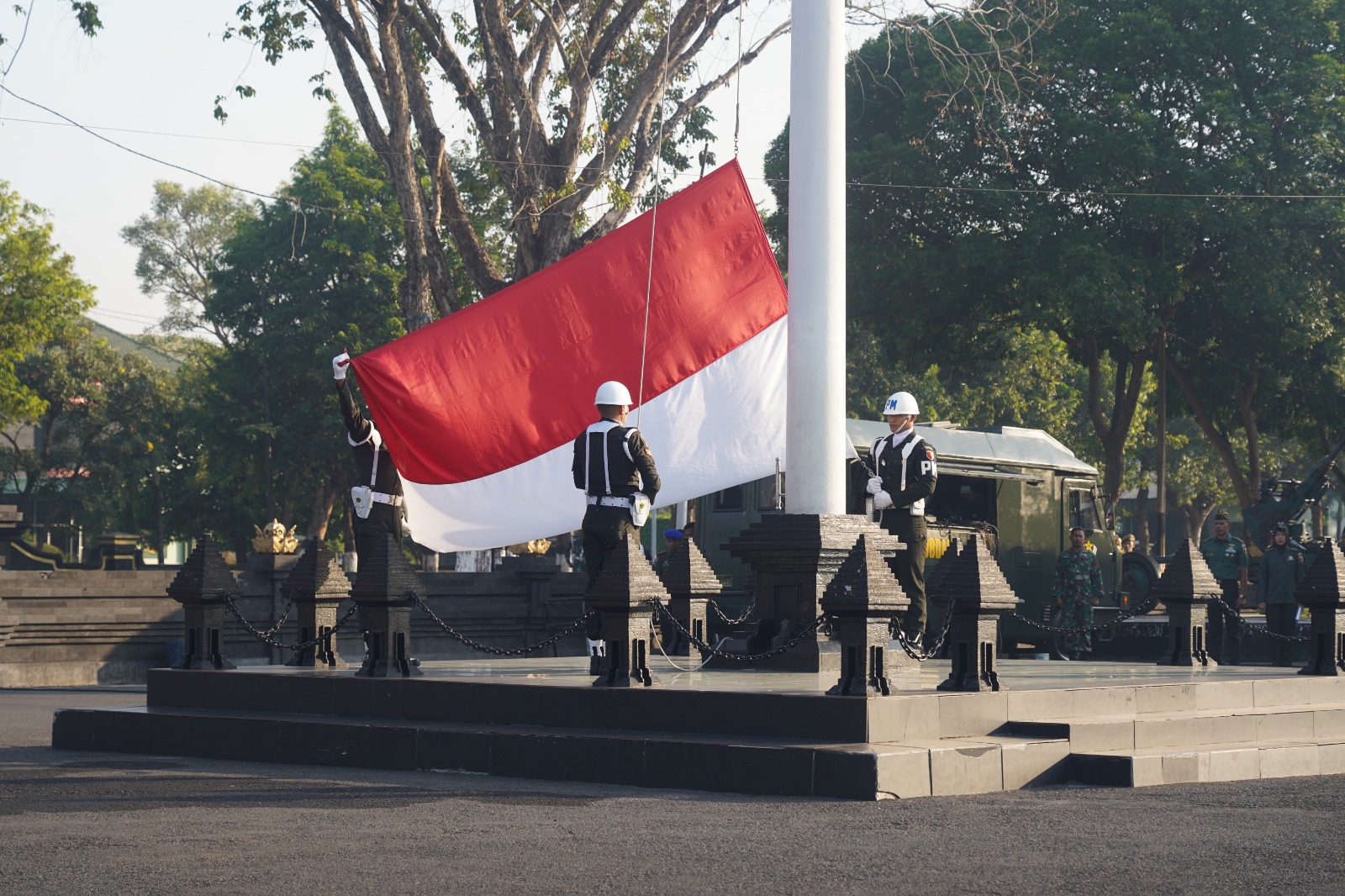 “Dalam survei tersebut, TNI tetap dipercaya oleh masyarakat sebagai lembaga dengan tingkat kepercayaan tertinggi, dengan nilai proporsi mencapai 95,8%,” ujar Brigjen Totok dalam upacara peringatan Hari Kemerdekaan yang diadakan di Lapangan Makodam V/Brawijaya, Surabaya, pada Senin (17/07/2023) pagi.