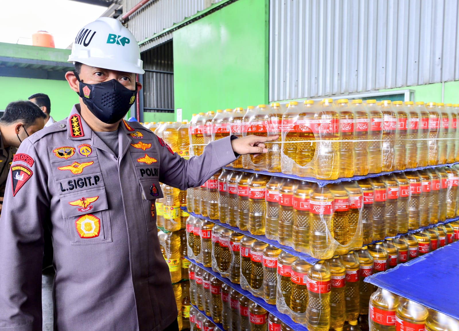 “Saya bersama Mendag meninjau langsung terkait dengan proses mulai dari kebijakan DMO yang diputuskan beliau. Kami langsung bicara dengan para produsen CPO yang memiliki kewajiban DMO. Tadi kita tanyakan dari bahan oline dijual sesuai HET Rp10.300. Beliau terima juga dari produsen CPO dengan harga Rp 9.300. Kemudian diolah dan beliau menjual dengan harga sesuai HET Rp14.000. Beliau sampaikan bahwa proses produksinya saat ini bisa dua kali lipat dari yang biasanya,” ujar eks Kabareskrim Polri itu.