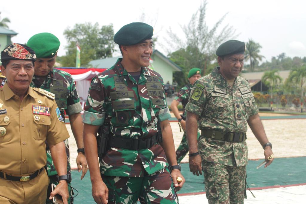 LATIHAN TEMPUR: Pangdam VI/Mlw Mayjen TNI Tri Budi Utomo bersama Commander of 13'th Infantry Brigade Tentera Darat Malaysia Brigadir Jenderal Suhaimi bin Hj Shamsuddin menutup latihan bersama Keris Kartika Malaysia-Indonesia.