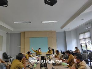 BAHAS : Bupati Muharram didampingi Wabup Agus Tamtomo memimpin rapat pembahasan tindak lanjut penanganan Covid-19.