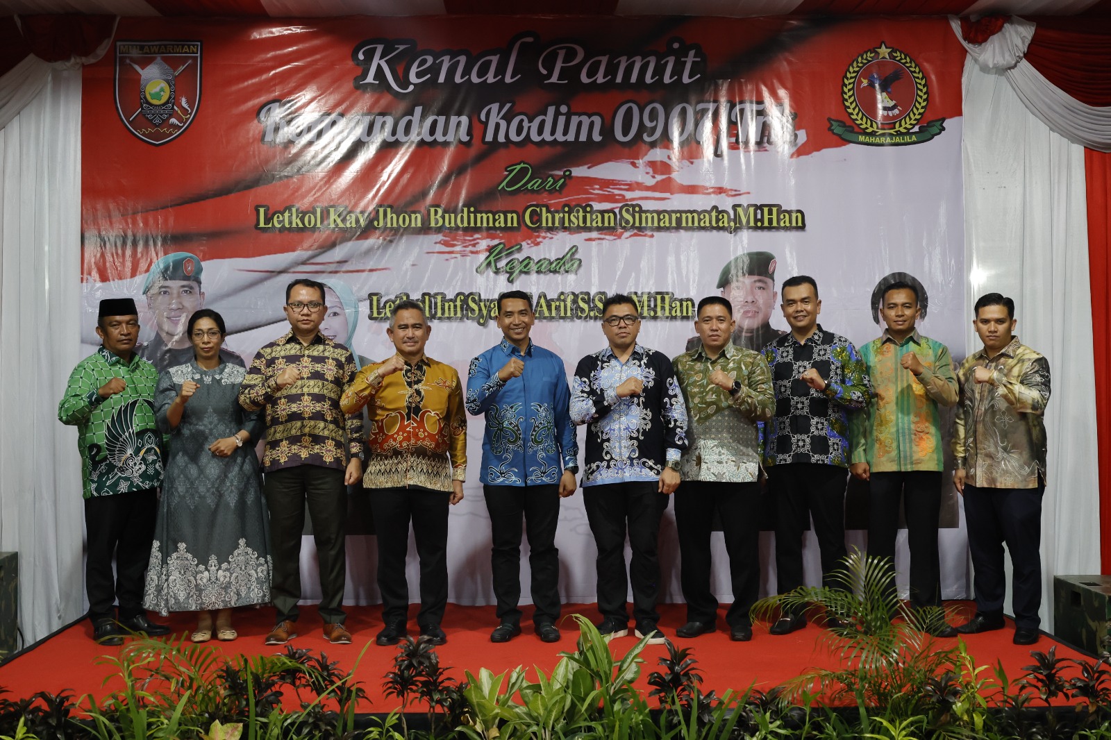Sementara itu Dandim 0907/Trk Letkol Inf Syaiful Arif,S.Sos.,M.Han. didampingi istri, Ny.Lidya Syaiful Arif berharap sinergitas forkopimda serta dukungan seluruh elemen masyarakat, sehingga tugas maupun tanggung jawabnya sebagai Dandim 0907 yang baru dapat berjalan dengan lancar.