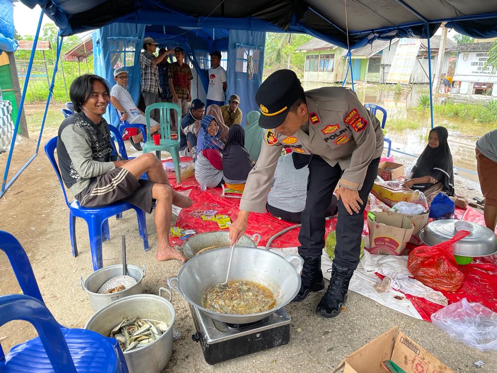 Syaifudin menuturkan, Polri akan tetap setia bekerja membantu para pengungsi memasak di dapur umum selama banjir belum surut.