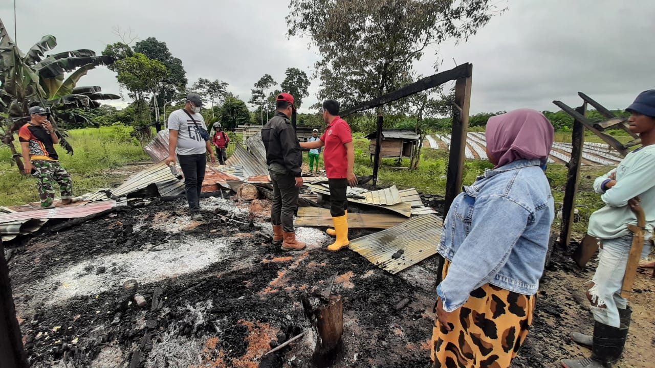 Sebuah pondok di Kampung Suka Murya, Kecamatan Talisayan, Munggu (5/3).terbakar