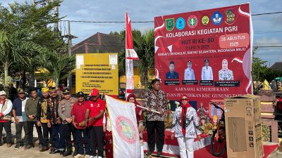 NEWSNUSANTARA.COM, BERAU – Merayakan hari kemerdekaan ke-80 Republik Indonesia, Persatuan Guru Republik Indonesia (PGRI) Kecamatan Gunung Tabur menggelar karnaval, Senin (18/8/2025).