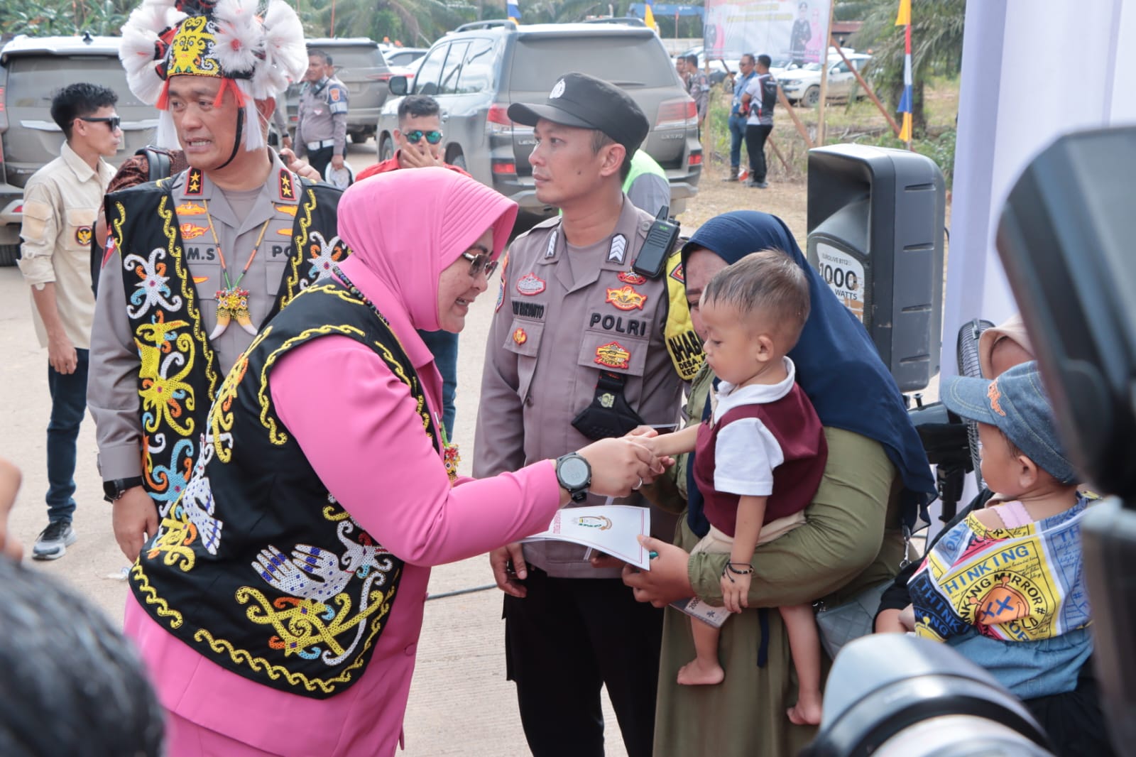 Disela kunjungannya, Kapolda didampingi Ketua Bhayangkari Daerah Kaltim Ny. Ade Imam Sugianto memberikan tali asih kepada beberapa anak penderita stunting di Kecamatan Tabang, Kukar.
