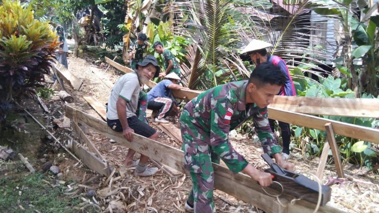 SATGAS PAMTAS RI MALAYSIA YONARMED 5/105 TARIK/ PANCAGIRI BESAMA WARGA LONG PUJUNGAN PERBAIKI RUMAH TIDAK LAYAK HUNI