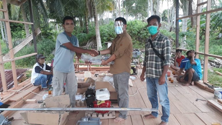 BANTUAN : Dinas Perikanan Berau memberikan bantuan mesin ketinting kepada kelompok nelayan di