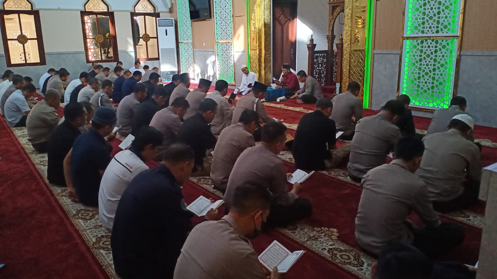 PENGAJIAN RAMADHAN: Personel Polda Kaltim mengikuti kegiatan Binrohtal di Masjid Al Ikhlas Polda Kaltim.
