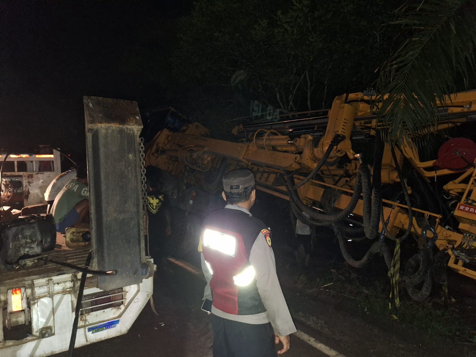 Truk Bermuatan Crane Amblas di Jl. Poros Berau-Tanjung Selor Km 30